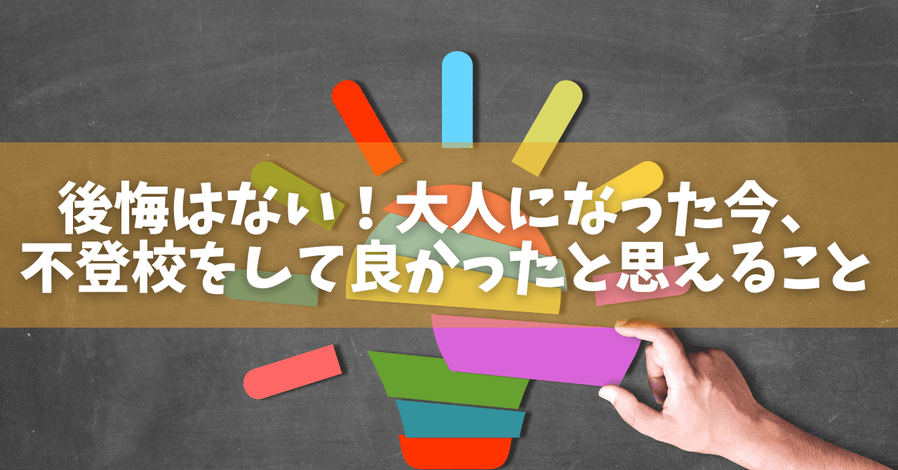 不登校は本気で「中卒」を覚悟していました。 大学も行けないし、みんなよりも相当苦労することになると中学生ながらに思っていました。大人になった今、不登校を経験して本当によかったと思っています。