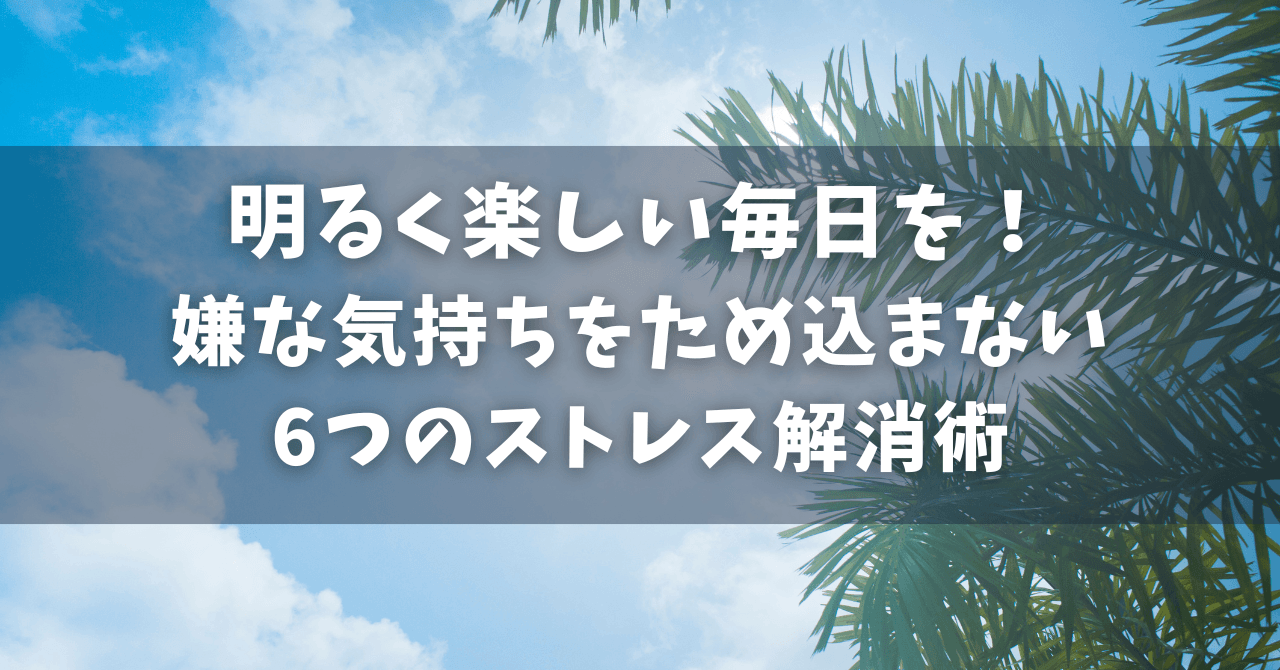 毎日を健康に過ごすコツは、ストレスは早めに解消してためないようにすることです。今回は、どうやってストレスを解消したらよいのかわからない方に向けた6つのストレス解消法を紹介します。